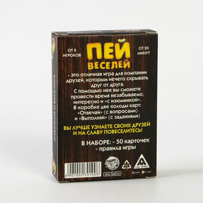 Купить игра для компании "пей веселей" 50 карт от 180 руб. с доставкой до пункта выдачи в Макушино. Интернет магазин ДекаМаркет. Оплата при получении.